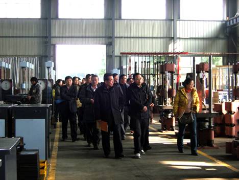 12月18日全國試驗機標委會在我公司董事長阮偉鑫、總經理阮海祥的陪同下蒞臨我公司。首先參觀了我公司的設備展覽館,董事長阮偉鑫對設備的功用、功能、管理模式并在試驗儀器設備上取得的成績做了簡要的介紹,全國試驗機標委會一行人對此驚嘆不已。隨后全國試驗機標委會參觀了公司儀器設備的車間。