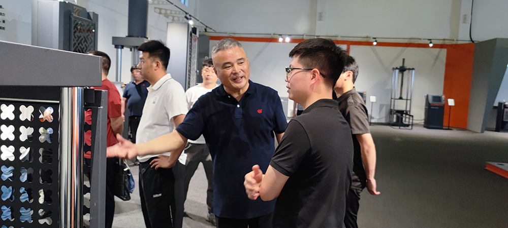 除了課堂知識,學員們在董事長阮偉鑫的帶領下實地參觀了我公司廠區、產品展示廳,充分了解了試驗機的生產過程與零部件制造工序。參觀過程中,學員們對我公司新研發的一體化智能砼試驗成套裝備、智能鋼筋重量偏差標距儀等智能化設備非常感興趣,通過現場演示和講解,對我公司研發實力、技術力量給予了充分的肯定和贊揚。